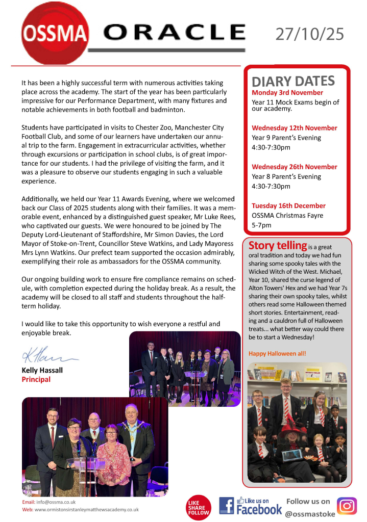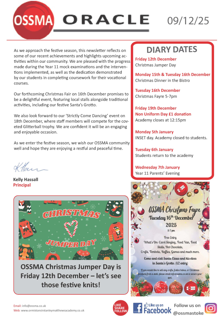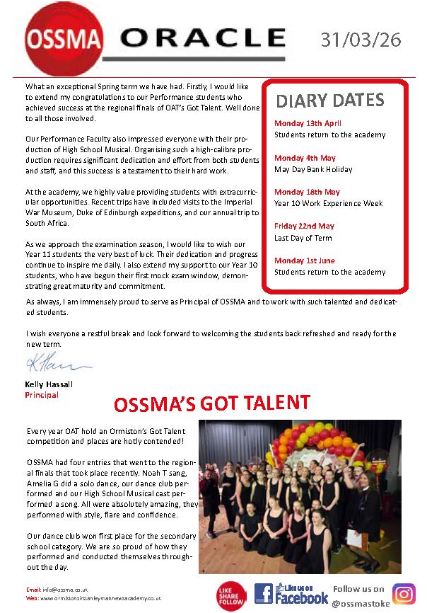 Our new newsletter “OSSMA Oracle” is now available to download.