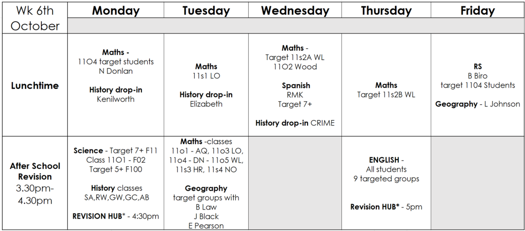 We are running a 4-week burst of intervention for Y11 students in the lead up to half-term and then their first set of mock exams (starting on Tuesday 4th November).
